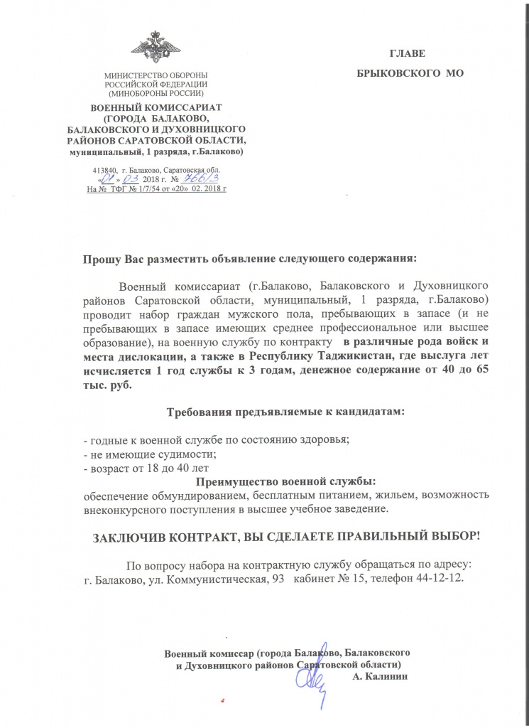 Набор граждан на военную службу по контракту.